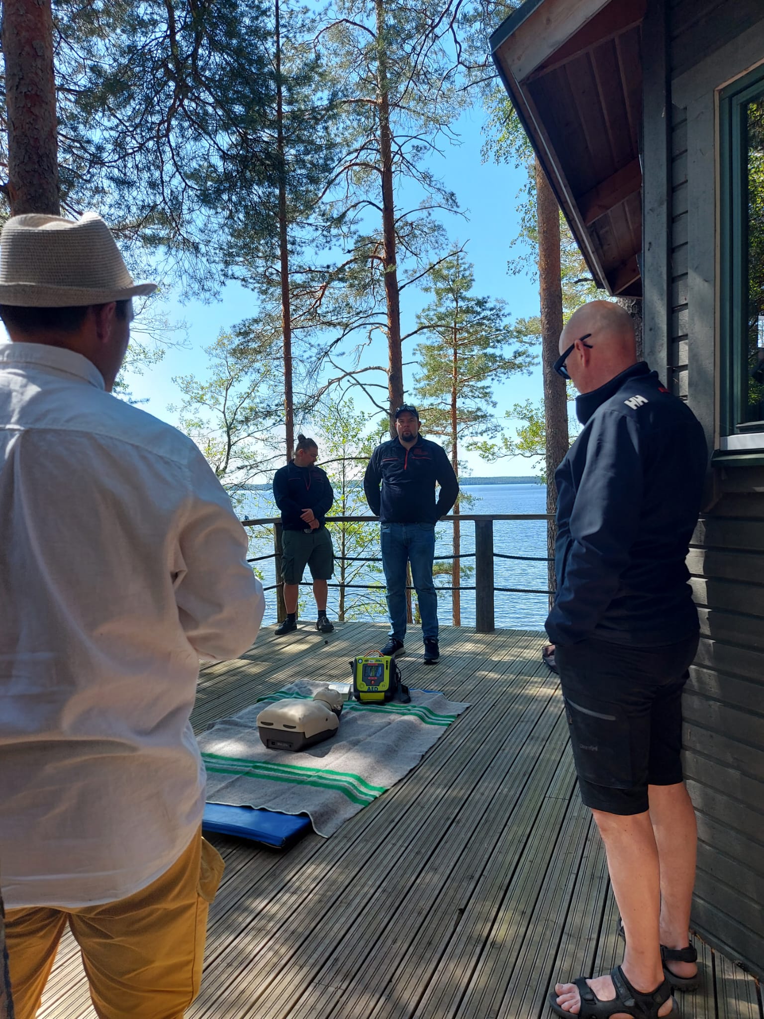 Iltapäivällä ohjelmassa oli hätäensiavun ja sydäniskurin käytön koulutusta Sysmän palokunnan ammattilaisten opastamana. Koulutus oli erittäin tärkeä ja hyödyllinen kaikille ja etenkin vesillä, missä avun saaminen saattaa kestää kauan.