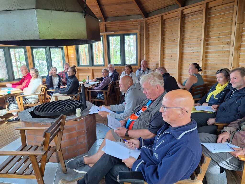 Kesäsää helli meitä, tunnelma oli rento ja oli mukavaa olla yhdessä porukalla. Päivä jatkui naisten ja miesten saunavuoroilla ja illalla kokoonnuimme kodalle illanviettoon. Pöytä notkui nyyttäriherkuista, kota täyttyi puheensorinasta ja myöhemmin illalla myös Ossyn ja Markon musiikista.