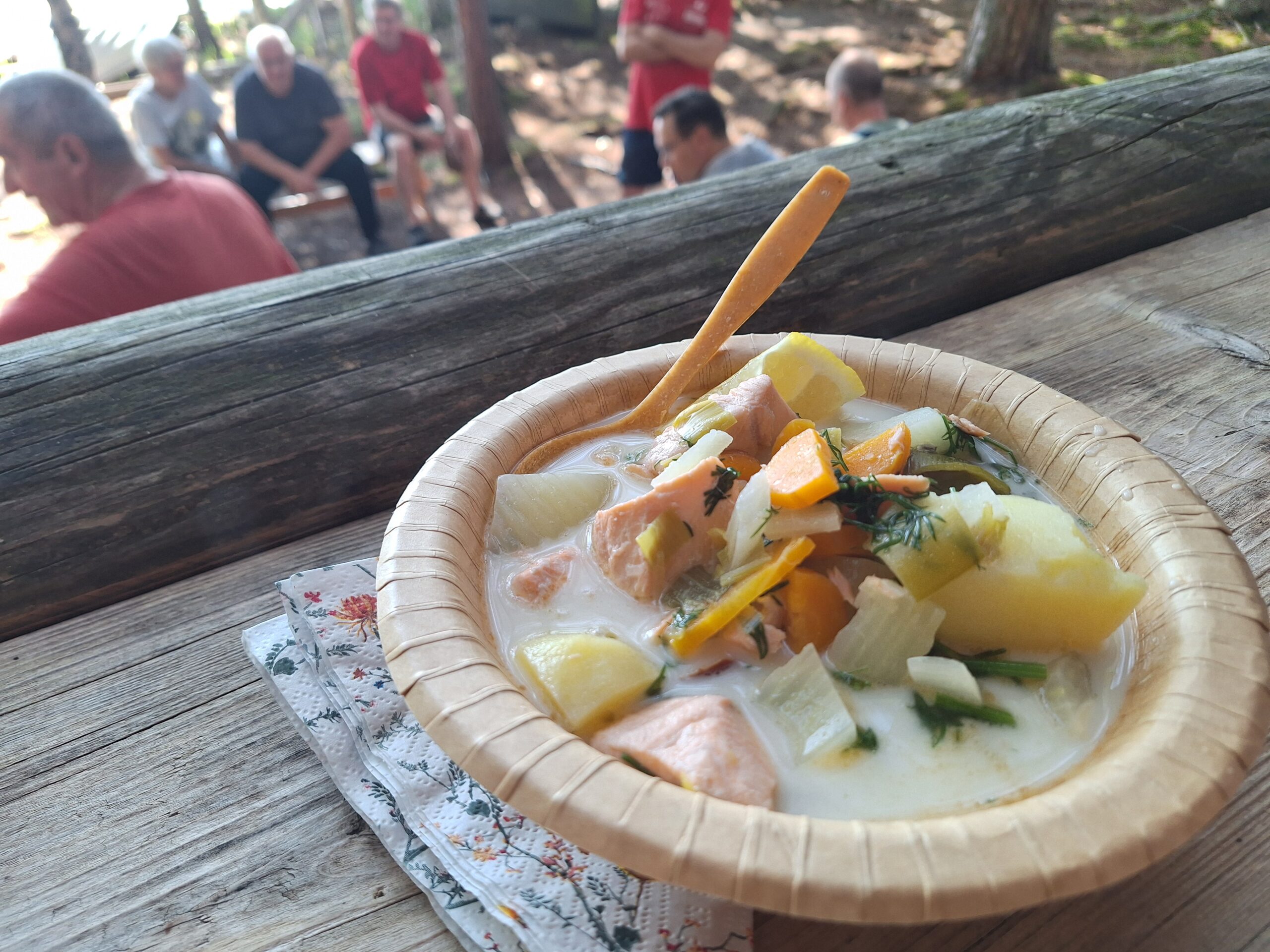 Kommodori Mikko Saunamäki kävi tehtävät läpi ja jakoi väen työryhmiin aamulla. Sen jälkeen tukikohdan täytti työn äänet ja talkoolaisten iloinen puheensorina. Talkoiden perinteinen lounas, lohikeitto maistui talkooväelle erinomaisesti. Suunnitellut työt saatiin oleellisilta osin tehtyä iltapäivällä. Talkoisiin osallistui 16 venekuntaa ja yli kolmekymmentä toimeliasta tepsiläistä.